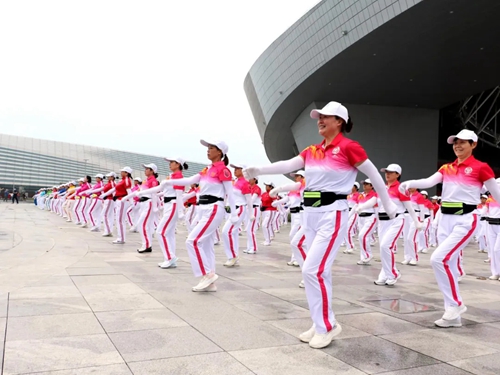 在奧體中心開闊的平臺上,群眾們開展健步走活動(dòng),他們踏著快樂的節(jié)拍,每個(gè)人的臉上都洋溢著笑容,收獲著滿滿的幸福。