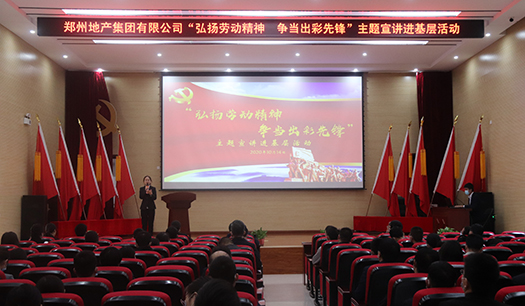 為進(jìn)一步深化市國資委“黨的創(chuàng)新理論萬場(chǎng)宣講進(jìn)基層”活動(dòng),培育和踐行社會(huì)主義核心價(jià)值觀,10月14日下午,鄭州地產(chǎn)集團(tuán)“弘揚(yáng)勞動(dòng)精神 爭(zhēng)當(dāng)出彩先鋒”主題宣講活動(dòng)在西流湖公司中原新區(qū)聯(lián)合黨委基層黨校成功舉辦。集團(tuán)宣講團(tuán)成員、西流湖公司黨支部、鄭地發(fā)展公司員工及中原新區(qū)項(xiàng)目參建單位代表共120余人參加活動(dòng)。