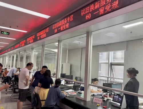 7月3日起,鄭州市住房保障和房地產(chǎn)管理局CBD大廳“以舊換新”專區(qū)正式開始開展業(yè)務(wù),設(shè)置4個服務(wù)專窗辦理“以舊換新”業(yè)務(wù)。同時,為讓有“以舊換新”意愿的群眾少跑腿,房屋交易中心將服務(wù)延伸到企業(yè),在收購主體城發(fā)集團(tuán)設(shè)置“以舊換新”網(wǎng)簽專區(qū),開展“以舊換新”網(wǎng)簽備案等業(yè)務(wù)。