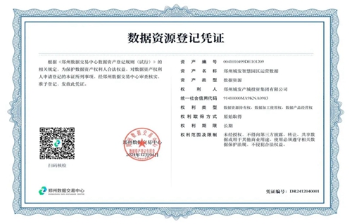 12月4日,城發(fā)集團下屬子公司鄭州城發(fā)產城投資集團有限公司(以下簡稱“城發(fā)產城公司”)在鄭州數(shù)據(jù)交易中心成功完成了“鄭州城發(fā)智慧園區(qū)運營數(shù)據(jù)”的資產登記,喜獲數(shù)據(jù)資源登記憑證,成為鄭州市首家將產業(yè)園區(qū)運營數(shù)據(jù)資產入表的國有企業(yè)。