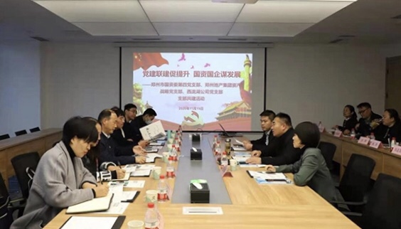 為深入學(xué)習(xí)貫徹黨的十九屆五中全會(huì)精神,進(jìn)一步促進(jìn)國資國企改革發(fā)展,不斷探索黨建與企業(yè)科學(xué)發(fā)展的有機(jī)融合,11月19日下午,鄭州市國資委第四黨支部與鄭州地產(chǎn)集團(tuán)資產(chǎn)戰(zhàn)略黨支部、西流湖公司黨支部聯(lián)合開展支部共建活動(dòng)。鄭州市國資委黨委委員、副主任劉學(xué)銀,副調(diào)研員范桂田,第四黨支部書記、財(cái)務(wù)監(jiān)管處處長(zhǎng)范競(jìng),產(chǎn)權(quán)管理處處長(zhǎng)常艷麗,鄭州地產(chǎn)集團(tuán)資產(chǎn)戰(zhàn)略黨支部書記、資產(chǎn)運(yùn)營部部長(zhǎng)王樂琪,西流湖公司黨支部書記、董事長(zhǎng)、總經(jīng)理吉獻(xiàn)亮,副總經(jīng)理李金光參加活動(dòng)。