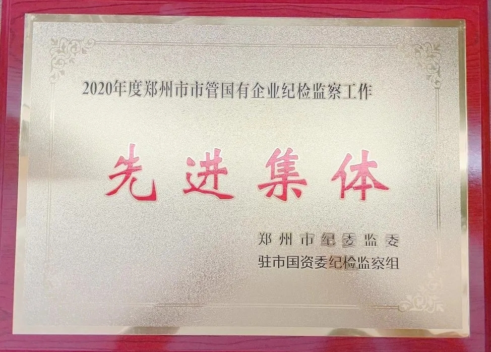 近日,集團(tuán)紀(jì)委被鄭州市紀(jì)委監(jiān)委駐市國資委紀(jì)檢監(jiān)察組授予“2020年度鄭州市市管國有企業(yè)紀(jì)檢監(jiān)察工作先進(jìn)集體”榮譽(yù)稱號。