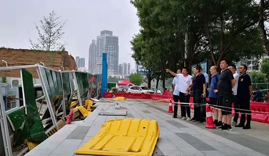 尤其是亳都古巷考古基坑面積較大,且全部被水淹沒,該地塊東側(cè)緊鄰古城墻,西側(cè)緊鄰鄭州文廟和中建文苑,盲目抽排基坑積水可能會(huì)對周邊古建筑及居民小區(qū)帶來安全隱患。面對險(xiǎn)情,為確保項(xiàng)目現(xiàn)場安全,鄭州商都商業(yè)發(fā)展有限公司立即啟動(dòng)緊急預(yù)案,明確防汛搶險(xiǎn)責(zé)任分工,迅速開展防汛搶險(xiǎn)工作。