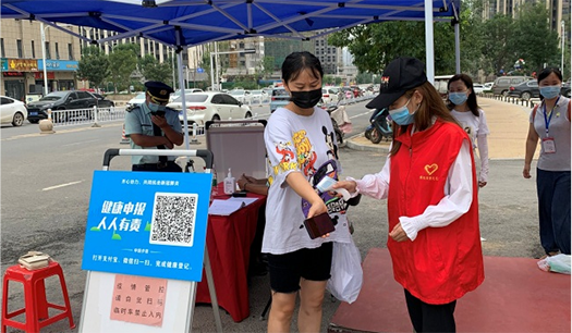 疫情防控刻不容緩。志愿者們首先仔細(xì)詢問(wèn)了社區(qū)值守人員防疫工作流程及細(xì)節(jié),認(rèn)真記錄社區(qū)防疫的步驟和相關(guān)要求。志愿者們配合社區(qū)工作人員提醒大家正確佩戴口罩,對(duì)進(jìn)出社區(qū)人員進(jìn)行健康掃碼和體溫測(cè)量,一個(gè)個(gè)忙碌的身影為社區(qū)抗疫一線筑牢“防護(hù)墻”。