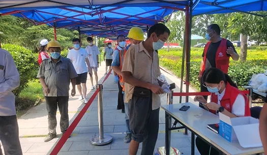 由于龍湖社區(qū)內(nèi)工地?cái)?shù)量多,人員流動(dòng)性大,檢測(cè)人群普遍年齡偏大,給檢測(cè)工作著實(shí)帶來(lái)一定難度。尤其是有一位工友,左腿受傷骨折,打著石膏拄著拐杖來(lái)做檢測(cè),他沒(méi)有拿身份證且隨行人員都不會(huì)熟練操作手機(jī)掃碼,但在志愿者的引導(dǎo)下,從帶領(lǐng)他走愛(ài)心通道、到協(xié)助錄入信息、幫助他們?nèi)私仄亮舸嬉约白罱K完成檢測(cè),志愿者認(rèn)真的工作態(tài)度得到了工友和社區(qū)工作者的高度贊揚(yáng)。檢測(cè)期間,志愿小隊(duì)統(tǒng)一按照社區(qū)的調(diào)度安排,各司其職,專(zhuān)人專(zhuān)崗,一切行動(dòng)聽(tīng)指揮,做到了各環(huán)節(jié)專(zhuān)人負(fù)責(zé)和快速反饋,整體檢測(cè)工作快速有序的進(jìn)行,僅在15日一天,社區(qū)就完成了4000余人次的檢測(cè)。來(lái)自龍湖社區(qū)的居民表示,第四次核酸檢測(cè)相較于前幾次效率明顯提高且秩序良好,從最初的半個(gè)小時(shí)以上到現(xiàn)在的幾分鐘,這不僅是效率質(zhì)變,更是廣大一線工作人員的付出心血,大家都非常感謝他們。