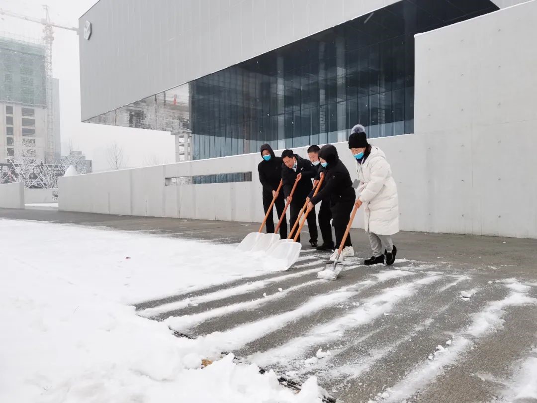 全力以赴,分秒必爭。4日下午突如其來的降雪,給第二天的檢測工作帶來了極大困難。面對艱巨的任務,為切實做好全員核酸檢測準備工作,保障參檢群眾生命財產(chǎn)安全。鄭地發(fā)展公司作為國企,危急關頭彰顯國企擔當,第一時間作出動員號召,由黨員同志帶頭,迅速組建了一支30余人的志愿服務隊,連夜開始了場地清理布置工作,調配防疫物資、準備消毒液、架設引導牌、拉設警戒線、張貼掃碼紙、擺放檢測臺,對商務服務中心進行全面消殺,同時組織新加入的志愿者開展模擬演練,幫助大家快速熟悉服務工作,保證各個環(huán)節(jié)有條不紊。5日清晨,志愿者們早早來到商務服務中心現(xiàn)場清理積雪,僅僅半個小時,園區(qū)便露出了干凈整潔的路面,為迎接檢測做好了充分準備。